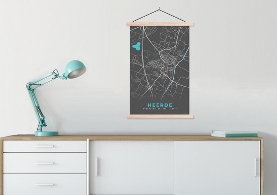Porte-affiche avec affiche - Affiche scolaire - Carte - Heerde - Carte - Plan de la ville - 60x90 cm - lattes vierges