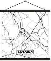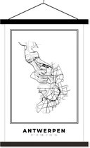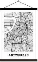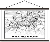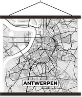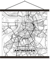 Porte-affiche avec affiche - Affiche scolaire - Carte - Plan d'étage - Plan de la ville - Anvers - België - Zwart Wit - 60x60 cm - Lattes noires