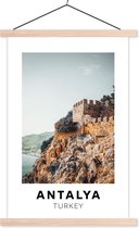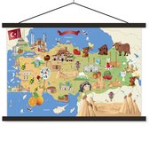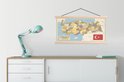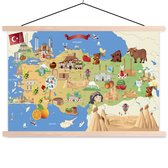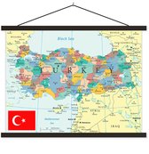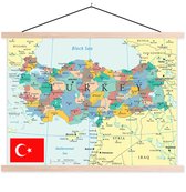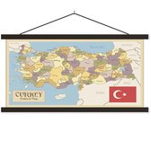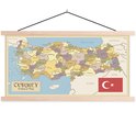 Porte-affiche avec affiche - Affiche scolaire - Carte rétro de la Turquie avec le drapeau turc - 90x45 cm - Lattes vierges
