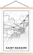 Porte-affiche avec Affiche - Affiche scolaire - Carte - Saint-Nazaire - Carte - France - Plan de la ville - Zwart et blanc - 60x90 cm - Lattes noires