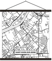 Affiche textile - Carte - Saint-Ouen-sur-Seine - Carte - France - Plan de ville - Zwart et blanc - Porte affiche