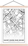 Porte-affiche avec Affiche - Affiche scolaire - Carte - Saint-Ouen-sur-Seine - Carte - France - Plan de la ville - Zwart et blanc - 60x90 cm - Lattes vierges