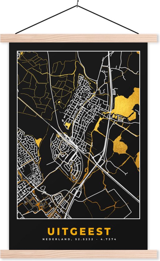 Porte-affiche avec affiche - Affiche scolaire - Carte - Uitgeest - Carte - Or - Plan de la ville - 40x60 cm - lattes vierges