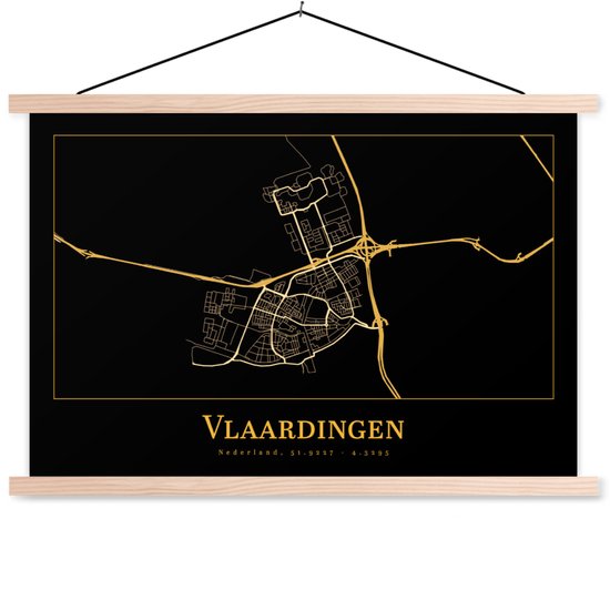 Porte-affiche avec affiche - Affiche scolaire - Carte - Vlaardingen - Zwart - Or - 150x100 cm - Lattes vierges