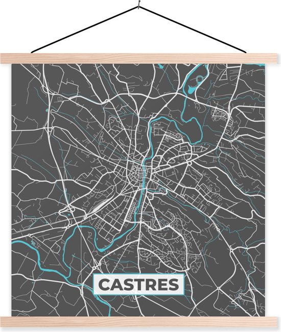 Porte-affiche avec affiche - Affiche scolaire - Castres - France - Plan de la ville - Carte - Plan d'étage - 60x60 cm - Lattes vierges