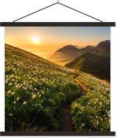 Porte-affiche avec affiche - Affiche scolaire - Cerf - Fleurs - Été - 40x40 cm - Lattes noires
