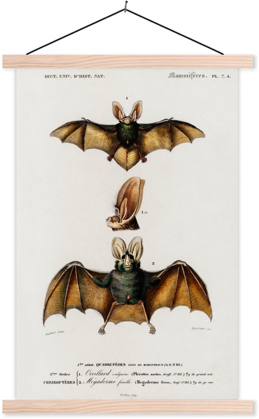 Porte-affiche avec affiche - Affiche scolaire - Chauve-souris - Vintage - Animal - 60x90 cm - Lattes vierges
