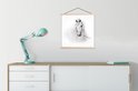 L'affiche textile est imprimée sur une toile solide avec deux lattes de bois vierges en haut et en bas. Une ficelle est attachée aux lattes, de sorte que la commission scolaire puisse être facilement suspendue. Les affiches textiles de TextilePosters sont disponibles dans plus de 25 tailles différentes. En plus des lattes en bois vierges, les affiches textiles sont également disponibles avec des lattes noires ou blanches.