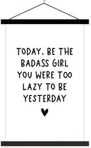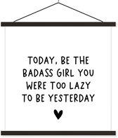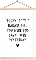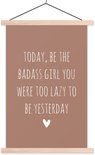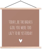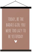 Porte-affiche avec affiche - Affiche scolaire - Citation en anglais Today, sois le dur à cuire que tu étais paresseux d'être hier sur fond marron - 60x90 cm - Lattes blanches