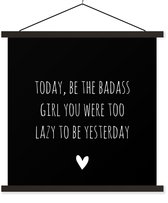 Sur cette image, la citation anglaise Today, be the badass you was to lazy to be hier est écrite en lettres blanches sur fond marron. Sous la citation se trouve un petit cœur.