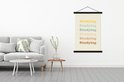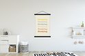 L'affiche textile est imprimée sur une toile robuste avec deux lattes noires en haut et en bas. Une ficelle est attachée aux lattes, de sorte que la commission scolaire puisse être facilement suspendue. Les affiches textiles de TextilePosters sont disponibles dans plus de 25 tailles différentes. En plus des lattes noires, les affiches textiles sont également disponibles avec des lattes en bois blanches ou claires.