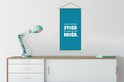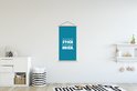 L'affiche textile est imprimée sur une toile solide avec deux lattes de bois vierges en haut et en bas. Une ficelle est attachée aux lattes, de sorte que la commission scolaire puisse être facilement suspendue. Les affiches textiles de TextilePosters sont disponibles dans plus de 25 tailles différentes. En plus des lattes en bois vierges, les affiches textiles sont également disponibles avec des lattes noires ou blanches.