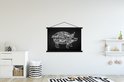 L'affiche textile est imprimée sur une toile robuste avec deux lattes noires en haut et en bas. Une ficelle est attachée aux lattes, de sorte que la commission scolaire puisse être facilement suspendue. Les affiches textiles de TextilePosters sont disponibles dans plus de 25 tailles différentes. En plus des lattes noires, les affiches textiles sont également disponibles avec des lattes en bois blanches ou claires.