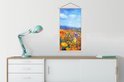 L'affiche textile est imprimée sur une toile solide avec deux lattes de bois vierges en haut et en bas. Une ficelle est attachée aux lattes, de sorte que la commission scolaire puisse être facilement suspendue. Les affiches textiles de TextilePosters sont disponibles dans plus de 25 tailles différentes. En plus des lattes en bois vierges, les affiches textiles sont également disponibles avec des lattes noires ou blanches.