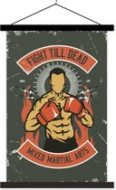 L'affiche textile est imprimée sur une toile robuste avec deux lattes noires en haut et en bas. Une ficelle est attachée aux lattes, de sorte que la commission scolaire puisse être facilement suspendue. Les affiches textiles de TextilePosters sont disponibles dans plus de 25 tailles différentes. En plus des lattes noires, les affiches textiles sont également disponibles avec des lattes en bois blanches ou claires.