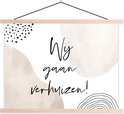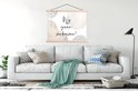 L'affiche textile est imprimée sur une toile solide avec deux lattes de bois vierges en haut et en bas. Une ficelle est attachée aux lattes, de sorte que la commission scolaire puisse être facilement suspendue. Les affiches textiles de TextilePosters sont disponibles dans plus de 25 tailles différentes. En plus des lattes en bois vierges, les affiches textiles sont également disponibles avec des lattes noires ou blanches.