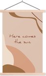 Des tons terreux et bruns forment l'arrière-plan de la citation estivale "Voici le soleil".'.