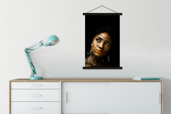 Porte-affiche avec affiche - Affiche scolaire - Femme - Boucles d'oreilles d'oreilles - Or - 60x90 cm - Lattes noires
