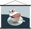 Porte-affiche avec affiche - Affiche scolaire - Femme - Café - Vintage - 60x45 cm - Lattes noires