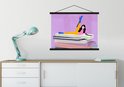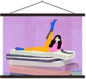 Porte-affiche avec affiche - Affiche scolaire - Femme - Vintage - Pastel - 60x45 cm - Lattes noires