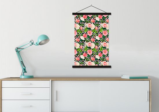 Porte-affiche avec affiche - Affiche scolaire - Fleurs - Couleurs - Roses - 60x90 cm - Lattes noires