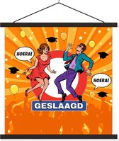 L'affiche textile est imprimée sur une toile robuste avec deux lattes noires en haut et en bas. Une ficelle est attachée aux lattes, de sorte que la commission scolaire puisse être facilement suspendue. Les affiches textiles de TextilePosters sont disponibles dans plus de 25 tailles différentes. En plus des lattes noires, les affiches textiles sont également disponibles avec des lattes en bois blanches ou claires.