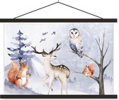 Porte-affiche avec affiche - Affiche scolaire - Forêt - Neige - Hiver - 150x100 cm - Lattes noires