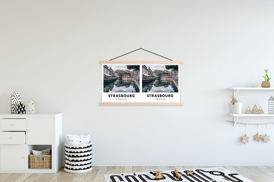 Porte-affiche avec affiche - Affiche scolaire - France - Water - Maisons - 150x75 cm - Lattes vierges