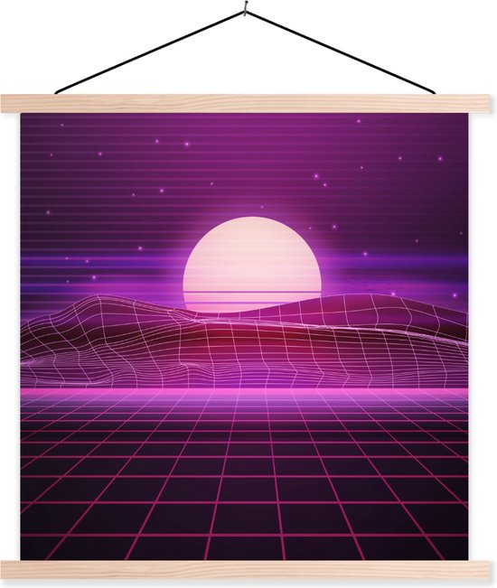 Porte-affiche avec affiche - Affiche scolaire - Gaming - Neon - Retro - Purple - Sun - Jeux - 40x40 cm - lattes vierges