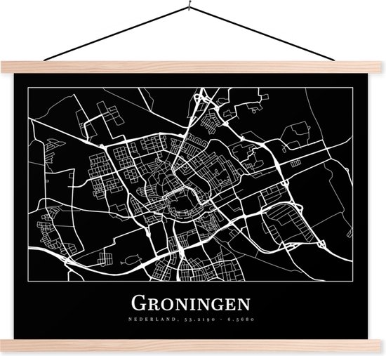 Porte-affiche avec affiche - Affiche scolaire - Groningue - Carte - Carte - Plan de la ville - 120x90 cm - Lattes vierges