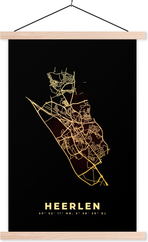 Porte-affiche avec affiche - Affiche scolaire - Heerlen - Plan de la ville - Carte - Carte - Nederland - 120x180 cm - lattes vierges