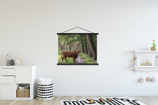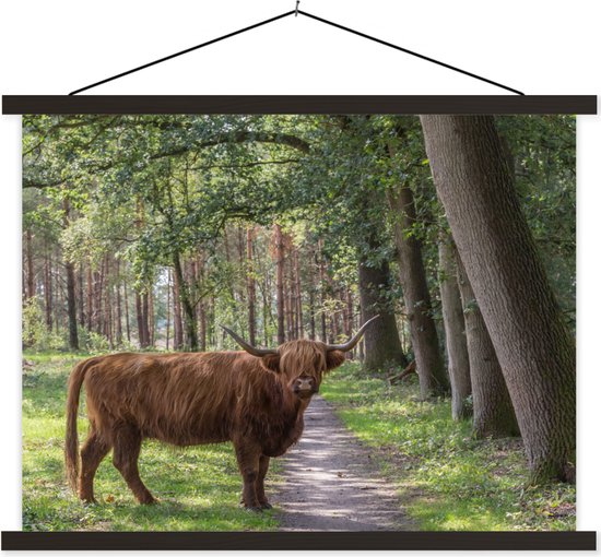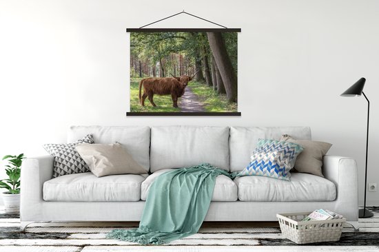 Porte-affiche avec affiche - Affiche scolaire - Highlander écossais - Chemin - Arbre - 150x113 cm - Lattes noires
