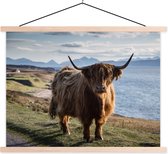Porte-affiche avec affiche - Affiche scolaire - Highlander écossais - Forêt - Montagnes - 150x113 cm - Lattes noires