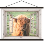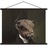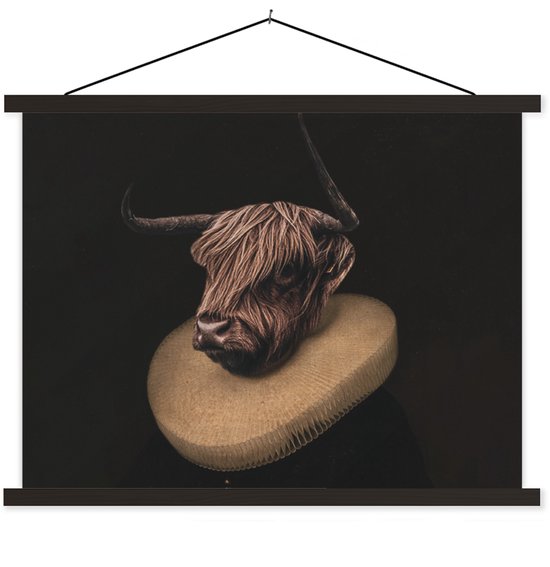 Porte-affiche avec affiche - Affiche scolaire - Highlander écossais - Peinture - Vache - 120x90 cm - Lattes noires