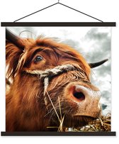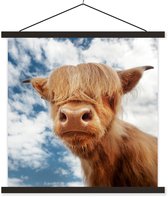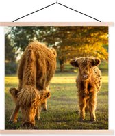 Porte-affiche avec affiche - Affiche scolaire - Highlanders écossais - Veau - Automne - 40x40 cm - Lattes noires