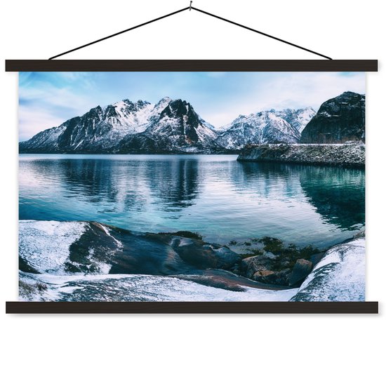 Porte-affiche avec affiche - Affiche scolaire - Hiver - Lac - Neige - 150x100 cm - Lattes noires