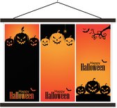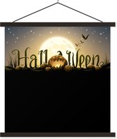 Porte-affiche avec affiche - Affiche scolaire - Les lettres d'Halloween illuminées par la pleine lune dans une illustration - 120x60 cm - Lattes noires