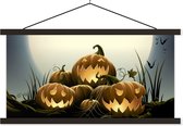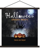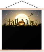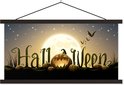 Porte-affiche avec affiche - Affiche scolaire - Les lettres d'Halloween illuminées par la pleine lune dans une illustration - 150x75 cm - Lattes noires