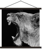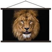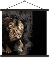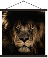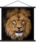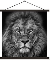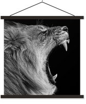 Porte-affiche avec affiche - Affiche scolaire - Lion - Portrait - Zwart - Animaux - 90x90 cm - Lattes noires