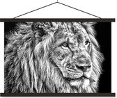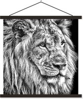 Porte-affiche avec affiche - Affiche scolaire - Lion - Portrait - Zwart - Wit - 90x60 cm - Lattes noires