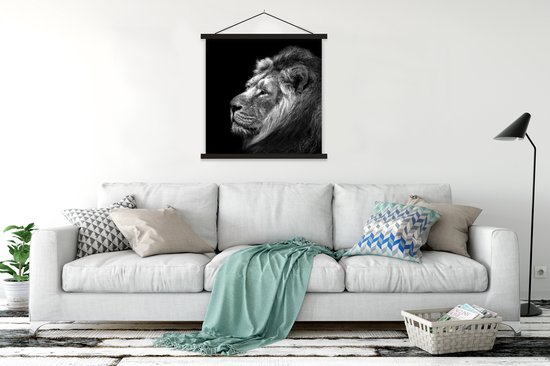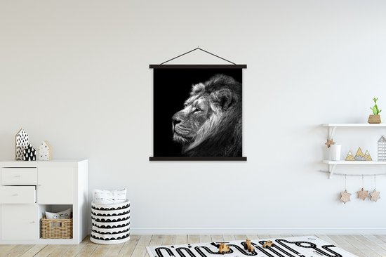 Affiche textile - Lion sur fond noir en noir et blanc - Posterhanger
