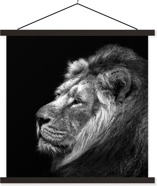 Porte-affiche avec affiche - Affiche scolaire - Lion sur fond noir en noir et blanc - 90x90 cm - Lattes noires