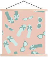 Porte-affiche avec affiche - Affiche scolaire - Lunettes de soleil - Slippers - Combinaison - 90x90 cm - lattes vierges