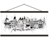 Porte-affiche avec affiche - Affiche scolaire - Maison - Amsterdam - Zwart - Wit - 120x60 cm - Lattes noires