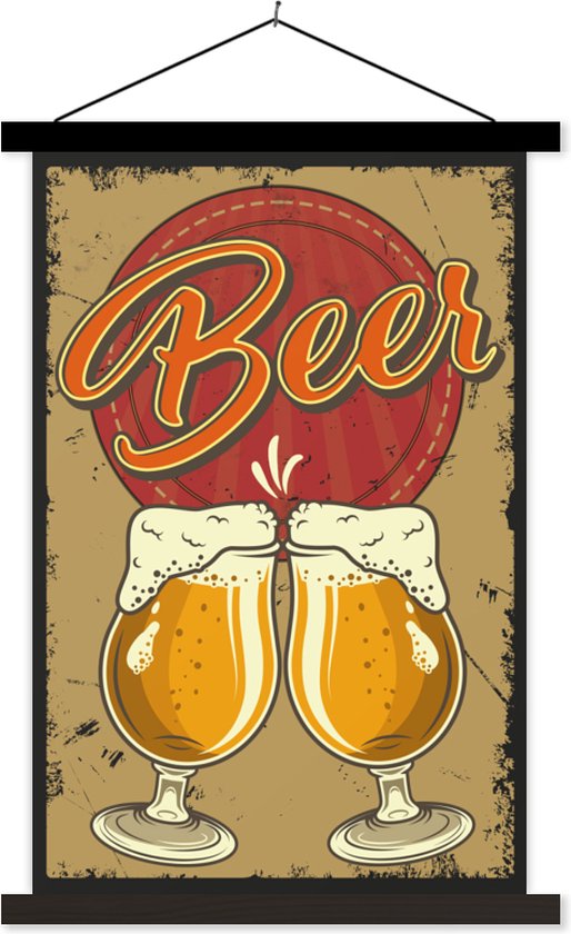 Porte-affiche avec affiche - Affiche scolaire - Mancave - Verres à bière - Vintage - Dessin - 120x180 cm - Lattes noires