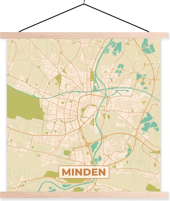 Porte-affiche avec affiche - Affiche scolaire - Minden - Carte - Carte - Plan de la ville - Vintage - 60x60 cm - Lattes vierges - Carte