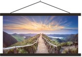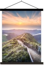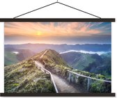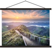 Porte-affiche avec affiche - Affiche scolaire - Montagnes - Soleil - Nature - 60x120 cm - Lattes noires