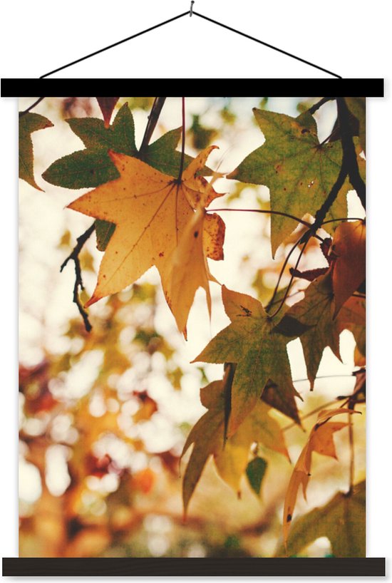 Porte-affiche avec affiche - Affiche scolaire - Nature - Feuilles d'automne - Rural - 40x53 cm - Lattes noires