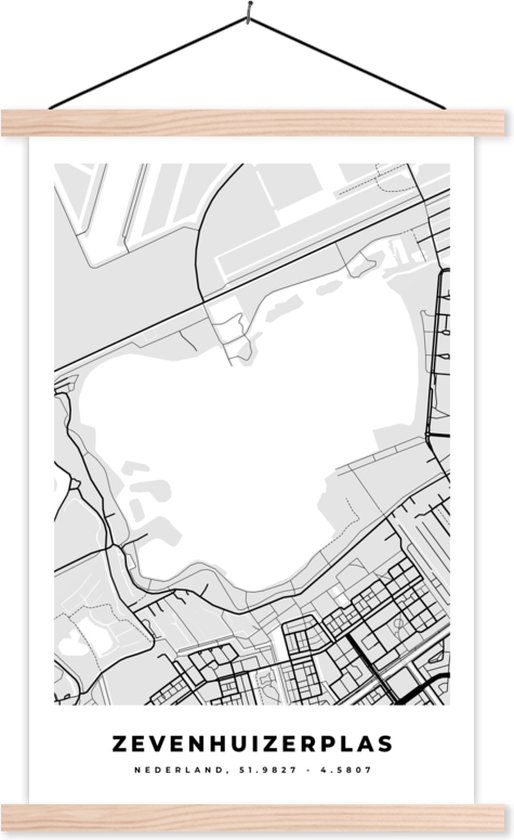 Porte-affiche avec affiche - Affiche scolaire - Nederland - Carte - Plan de la ville - Zevenhuizerplas - Carte - 120x180 cm - lattes vierges