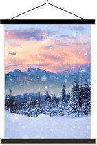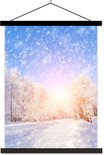 Porte-affiche avec affiche - Affiche scolaire - Neige - Soleil - Hiver - 90x120 cm - Lattes noires
